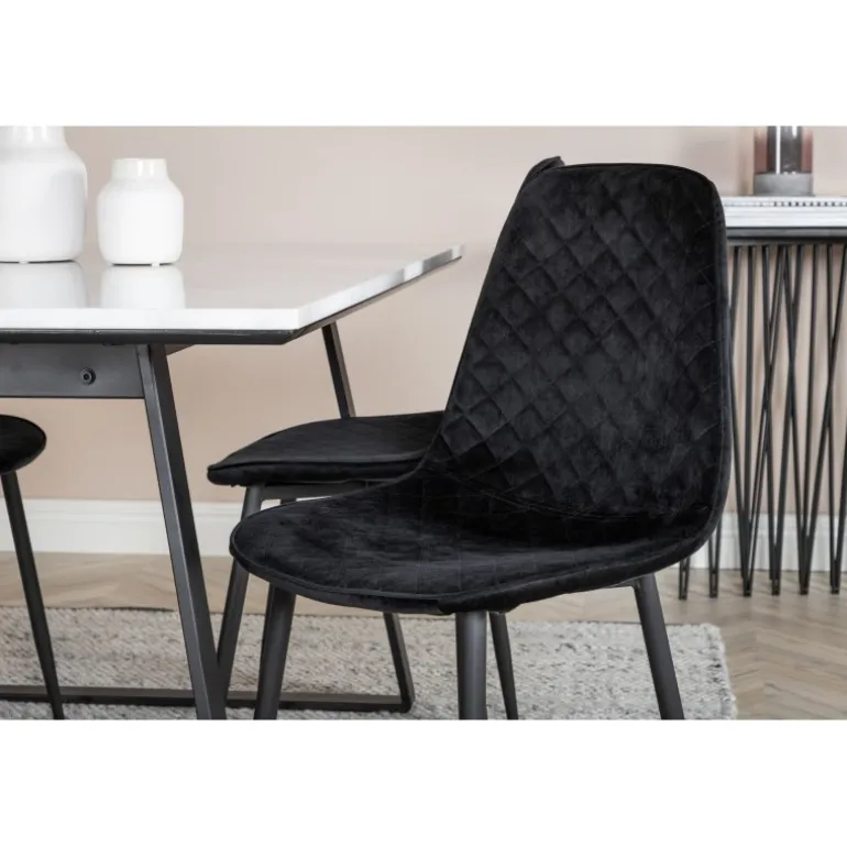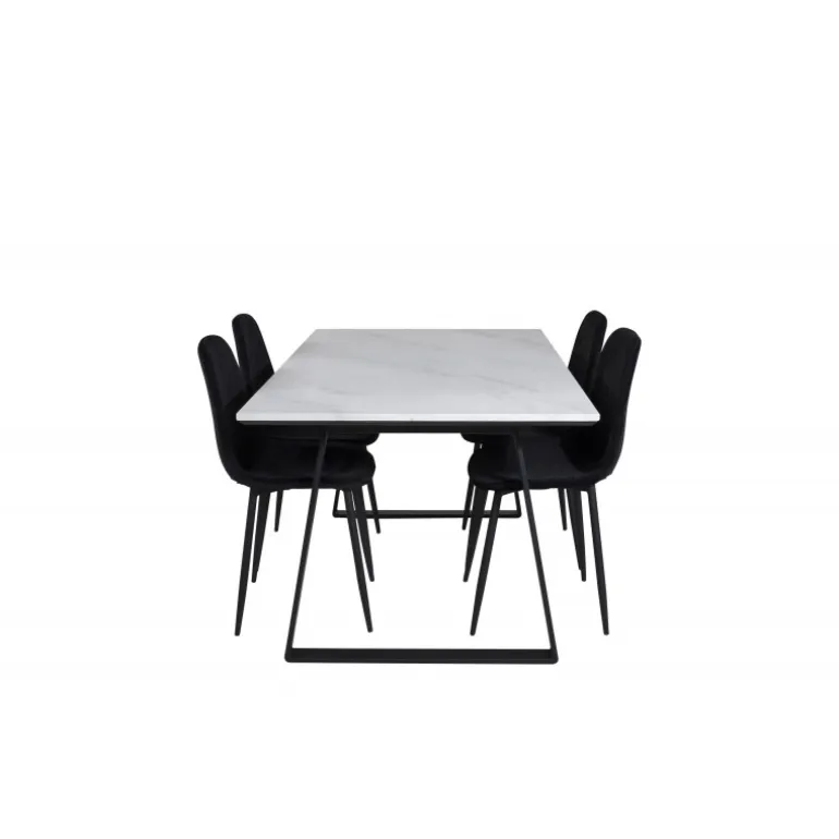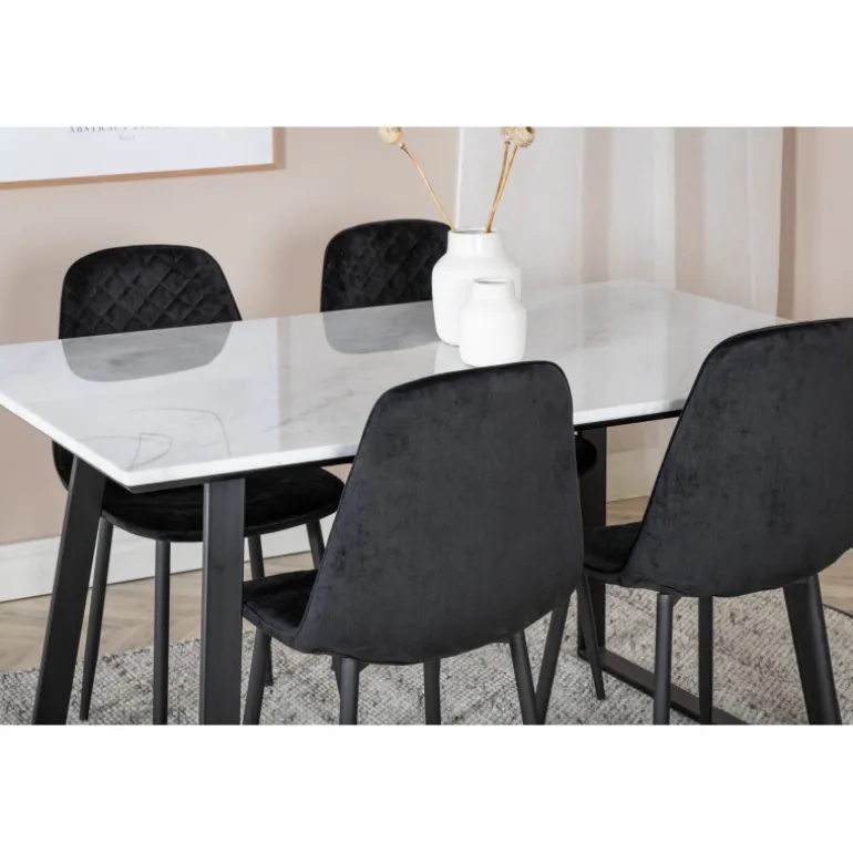 Spisebord Estelle i et slankt design, sammen med spisebordsstole Polar – den perfekte kombination for dem, der ønsker en trendy madgruppe. Den høje siddekomfort af stolene inviterer til lange og vidunderlige øjeblikke for socialt samvær!