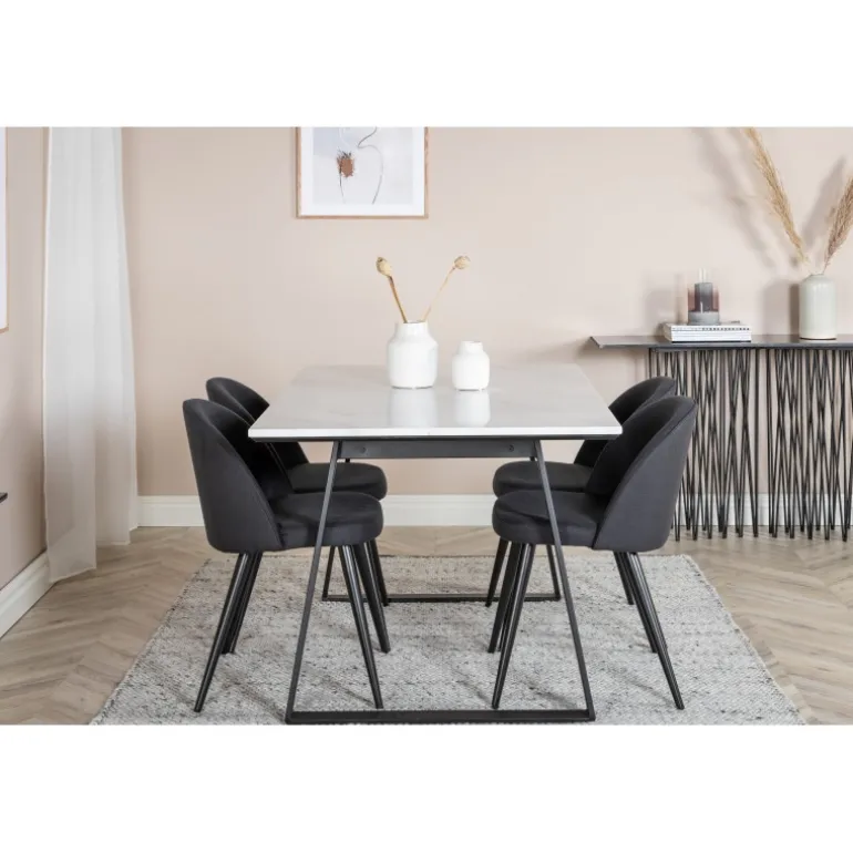 Køb af en forudsamlet spisestuegruppe er både trendsikker og praktisk! Her kombinerer vi vores spisebord Estelle med vores komfortable spisestuestole Velvet. Lad hjertet af dit hjem blive præget af din nye iøjnefaldende spisestuegruppe.