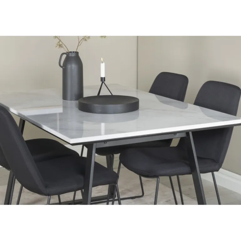 Vores smukke marmorspisebord i marmor sammen med de moderne spisestole Muce skaber en trendy Spisebordssæt, du vil længes hjem til. “Dress up or down” din Spisebordssæt med anden dekoration rundt omkring, velegnet til både hverdags- og festmåltider!