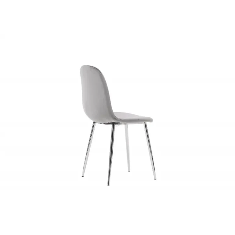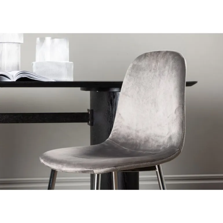 En moderne drømmestol fra serien Eva i tidløs lys grå farve! Denne spisestol i et fuldt polstret design med en let afrundet ryg og sæde i velourstof og ben i lys grå metal er lige så komfortabel som den er iøjnefaldende. Indret hjemmets hjerte indbydende og hyggeligt og nyd dejlige måltider sammen!
