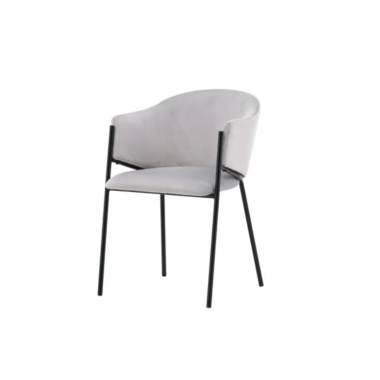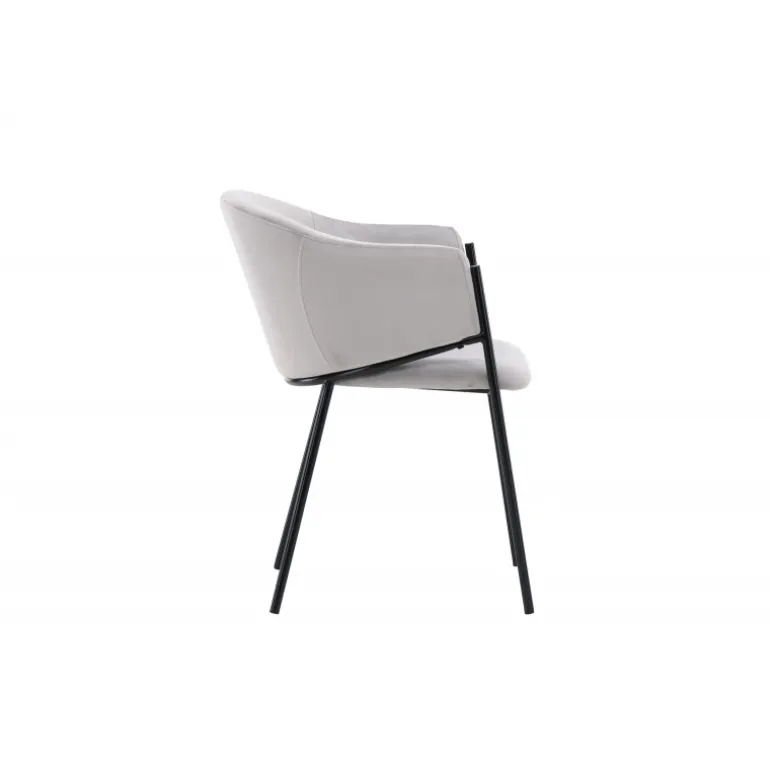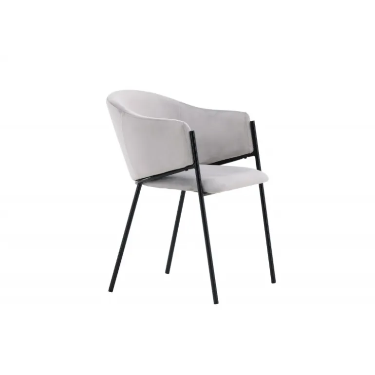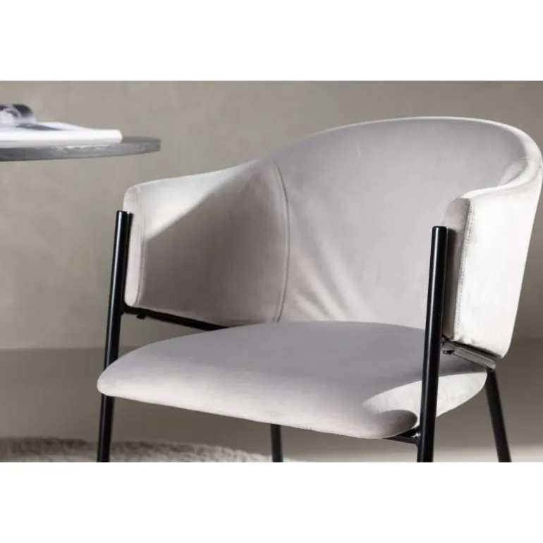 Evelina spisebordsstolen har et nostalgisk udtryk, er lige så stilfuld som komfortabel og skaber et luksuriøst blikfang omkring dit spisebord! Stolen har et fuldt polstret sæde med en rundet ryglæn i lysegrå fløjlstof og dekorative, minimalistiske ben i sort stål. Det trendsikre design imponerer og er helt i tråd med tidens trends. Sid komfortabelt og nyd måltiderne i disse elegante spisebordsstole!