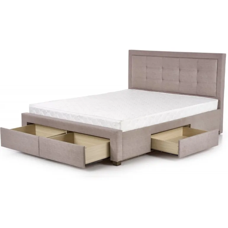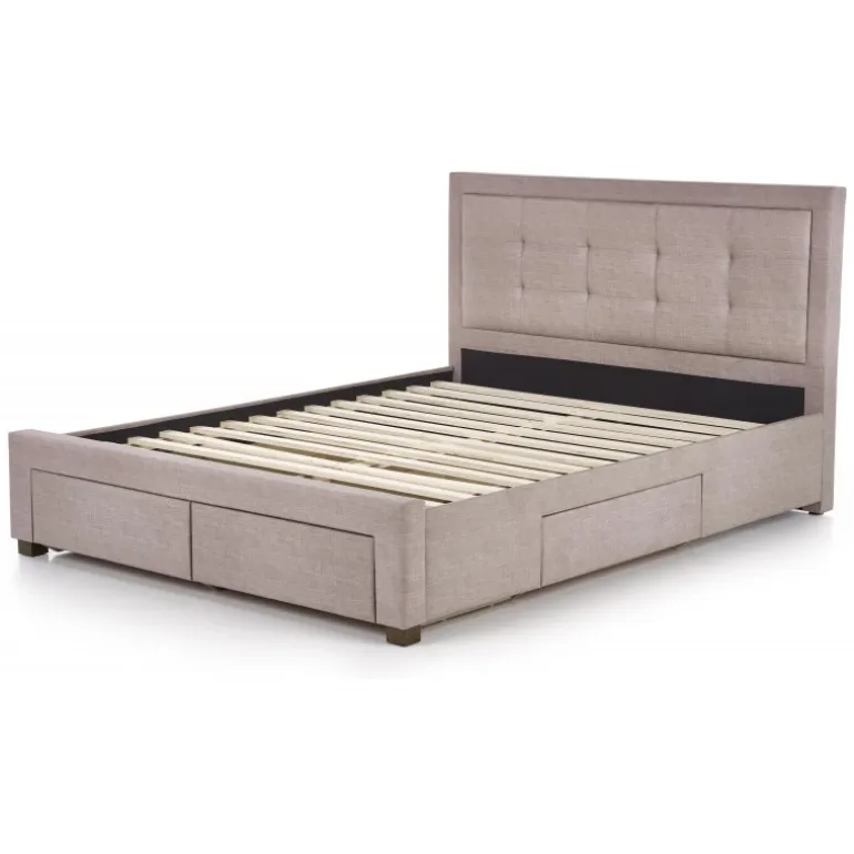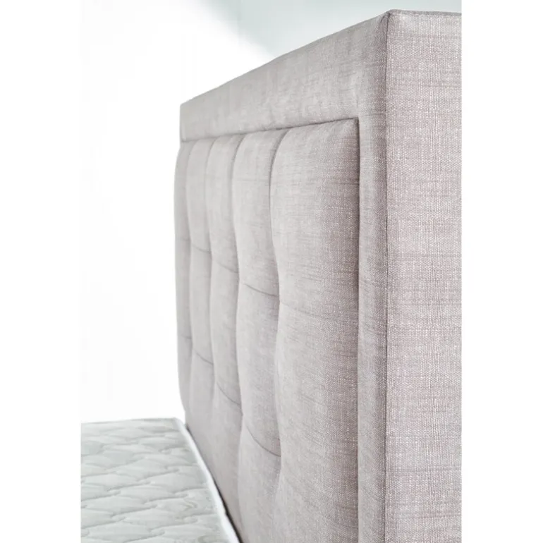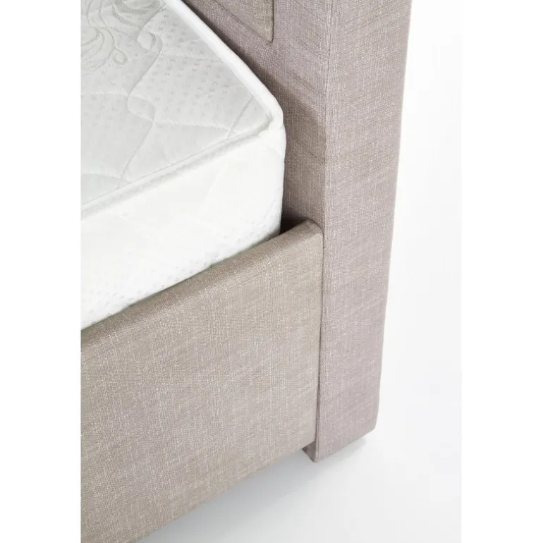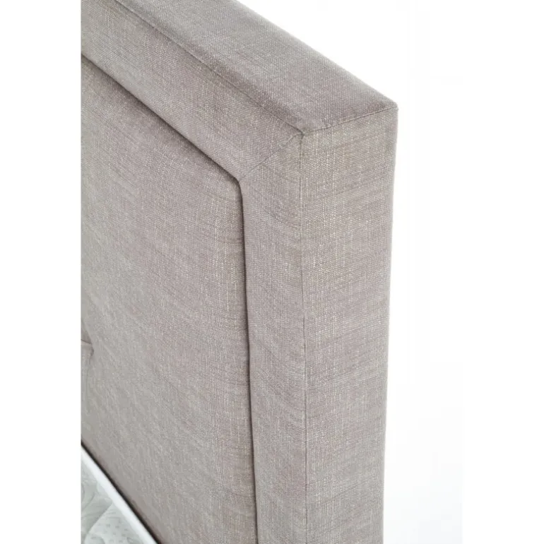 - Elegant beige stof og valnøddetræ, der passer til de fleste indretninger