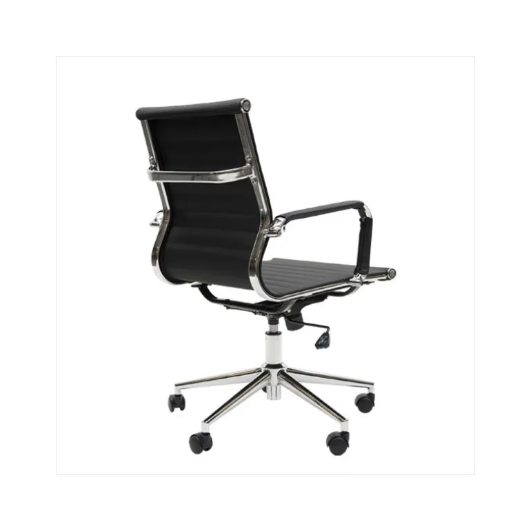 En slidstærk stol med polster i PU læder med krom stel, fodkryds og armlæn, der også er polstret.