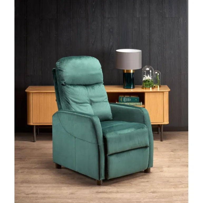 Oplev ultimativ komfort med FELIPE 2 lænestol i mørkegrøn. Denne luksuriøse lænestol er betrukket med blødt velourstof (BLUVEL 78), som giver en eksklusiv følelse og et elegant udseende. Med dimensionerne 64/84-135/103-76/48 cm er denne lænestol perfekt til afslapning i stuen eller læseværelset. Den justerbare ryglæn giver dig mulighed for at finde den perfekte position for maksimal komfort.