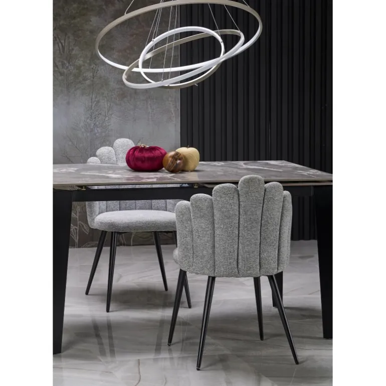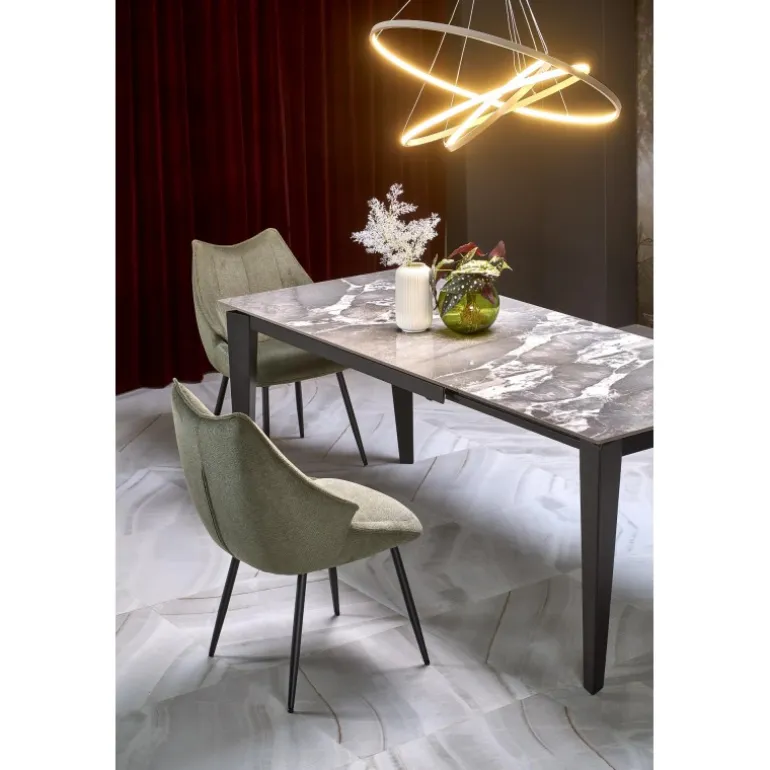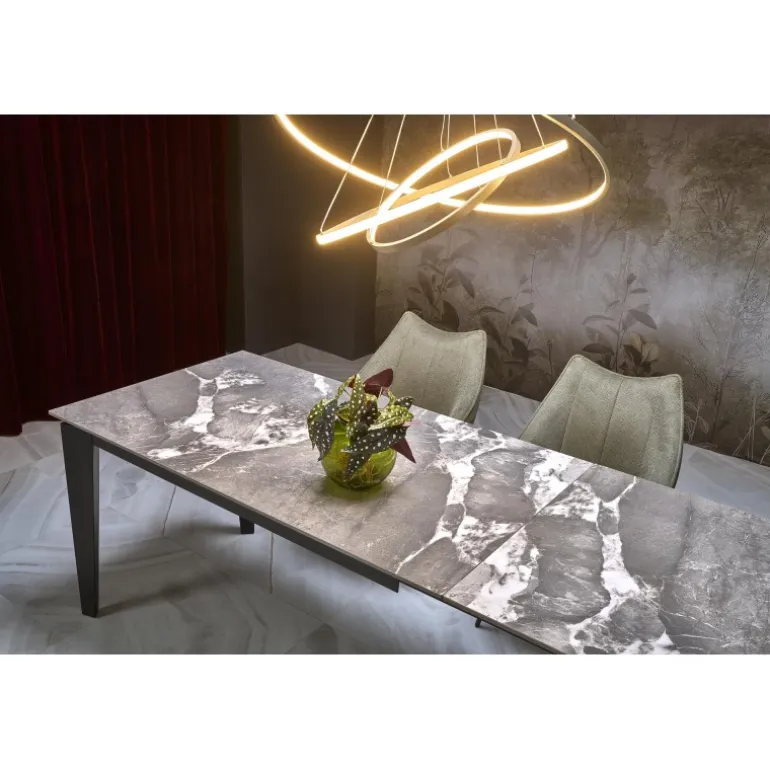 Oplev FELIX Spisebord med udtræk i elegant grå marmor og Sort stel, et perfekt valg til enhver moderne spisestue. Dette Spisebord med udtræk har dimensionerne 141-201/81/76/124-184 cm og er fremstillet af holdbart sintrerede sten og pulverlakeret stål, hvilket sikrer både stil og holdbarhed. Med sin justerbare længde kan bordet nemt tilpasses til både små og store sammenkomster, hvilket gør det til en praktisk løsning for enhver husholdning.