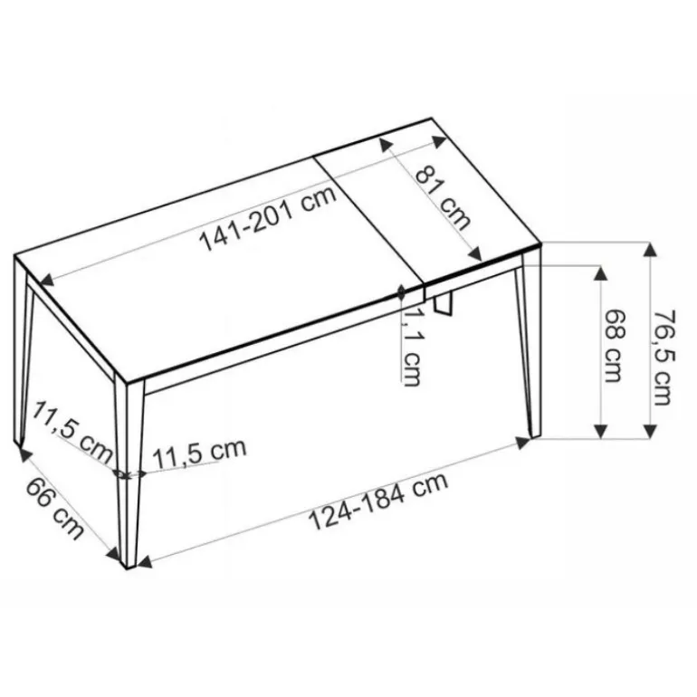 | Dimensioner | Højde: 76 cm, Bredde: 81 cm, Dybde: 124-184 cm, Længde: 141-201 cm |
