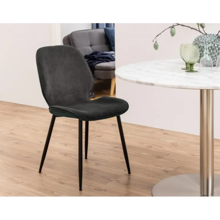 Femke spisebordsstol Wind stof antracit 40, FR skum, stel metal pulverlakeret ru, mat sort, pakning 4 stk
