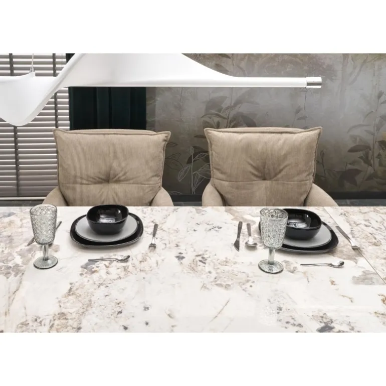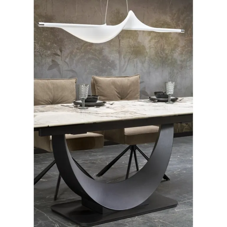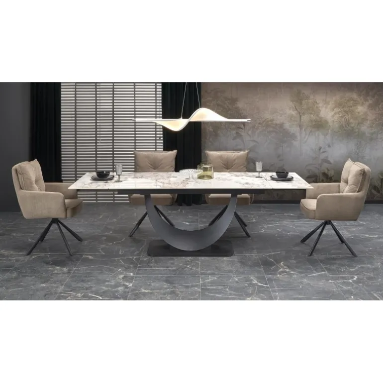 FERNANDO Spisebord med udtræket kombinerer elegance og funktionalitet med sin hvide marmorbordplade og Sorte ben. Perfekt til både mindre og større sammenkomster, kan dette bord nemt udvides fra 160 cm til 240 cm. Bordpladen er lavet af holdbart sinteret sten, mens benene er fremstillet af pulverlakeret stål, hvilket sikrer både styrke og stil. Dette moderne design passer ind i enhver spisestue og tilføjer et strejf af luksus. Med mål på 160-240/92/75 cm og en nettovægt på 133,500 kg, er FERNANDO Spisebord med udtræket det ideelle valg for dem, der ønsker kvalitet og æstetik i deres hjem.