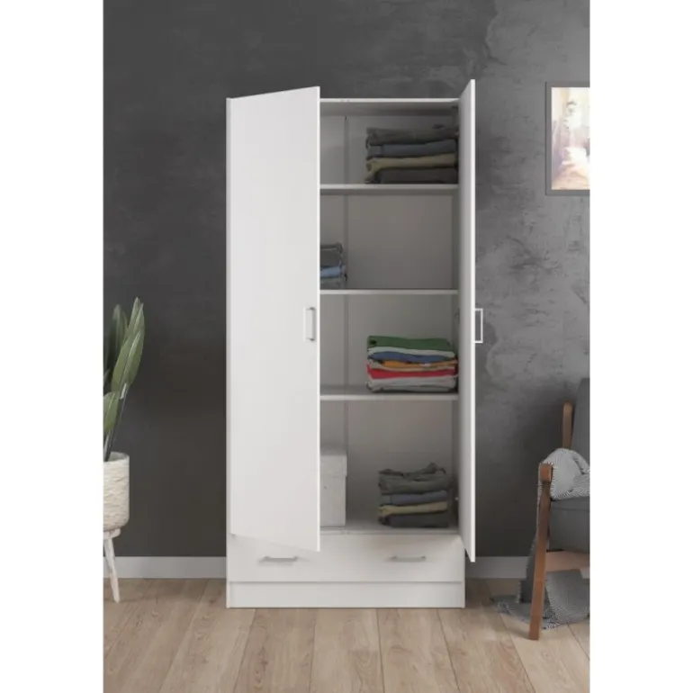 Fiesta entreskab kommer i et tidsløst design, der har vægt på funktionalitet og gode opbevaringsmuligheder, der samtidig ikke går på kompromis med det stilfulde design et enkelt og elegant skab med en struktur i hvid eg. Serien byder på forskellige skabe, bredder, højder og farver.