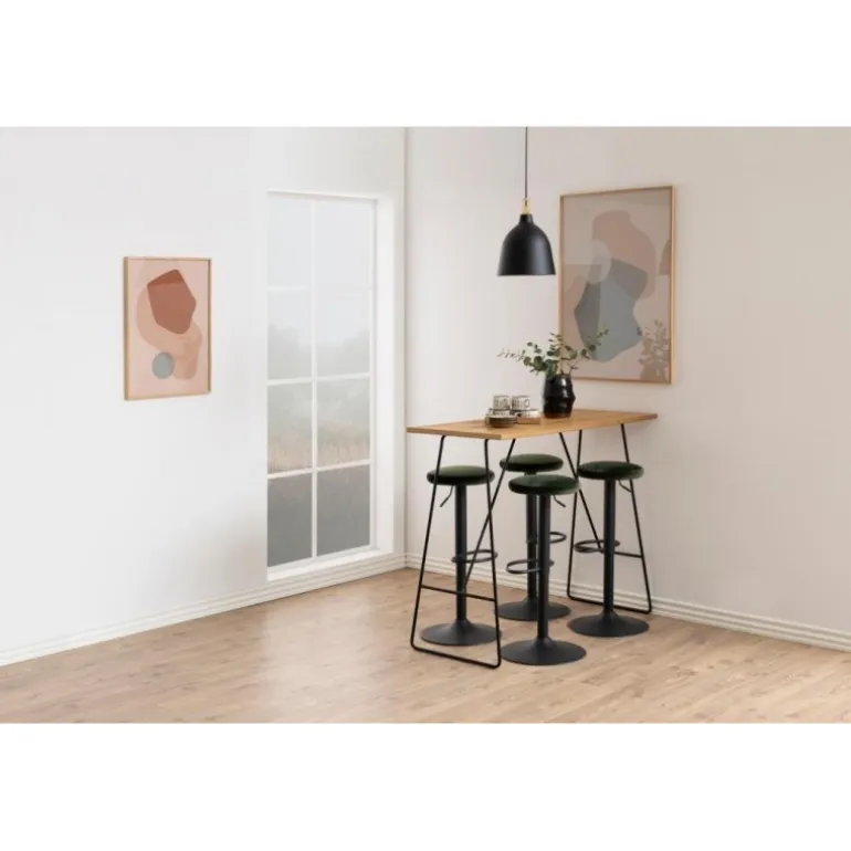 Finch barstol sæde VIC stof skovgrøn 68AC, fodstøtte, trompetfod pulverlakeret ru, mat sort, pakning 2 stk