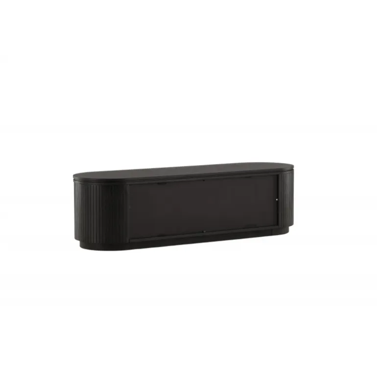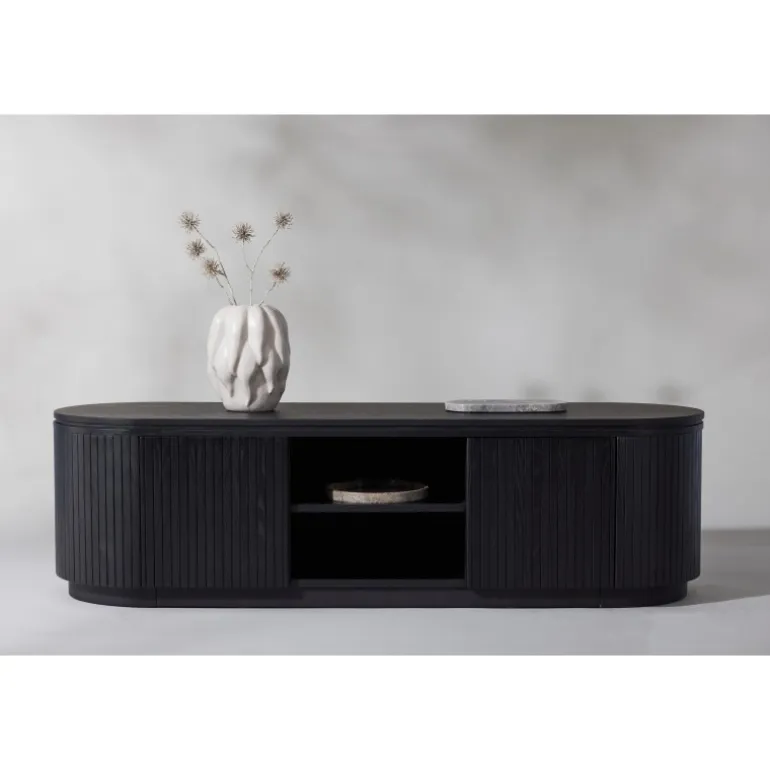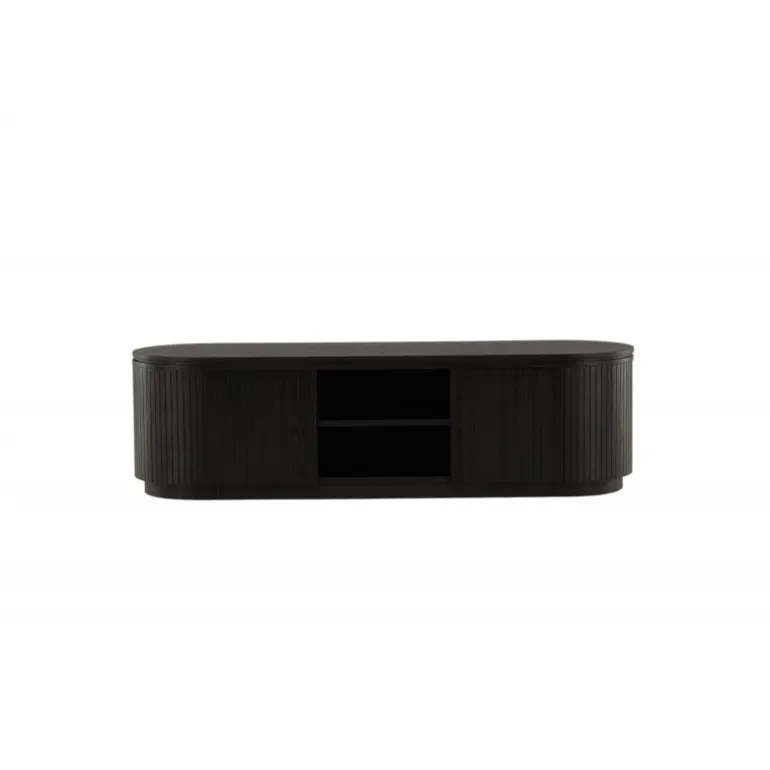 Denne Fjallbacka TV Bænk fra Fjallbacka-serien tilhører Wind-kollektionen og har et slankt, skandinavisk design, der fanger øjet! Lavet af sort egetræ med finer og har skabe til skjult opbevaring samt to åbne hylder, der er perfekte til smukke interiørdetaljer eller små stearinlys. Brug den som en TV bænk eller som et elegant sidebord i stuen, og du vil hurtigt øge stilniveauet i dit hjem!