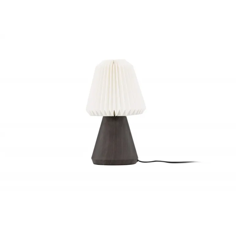 - Moderne design: Konisk lampebase i valnøddefarvet træ.