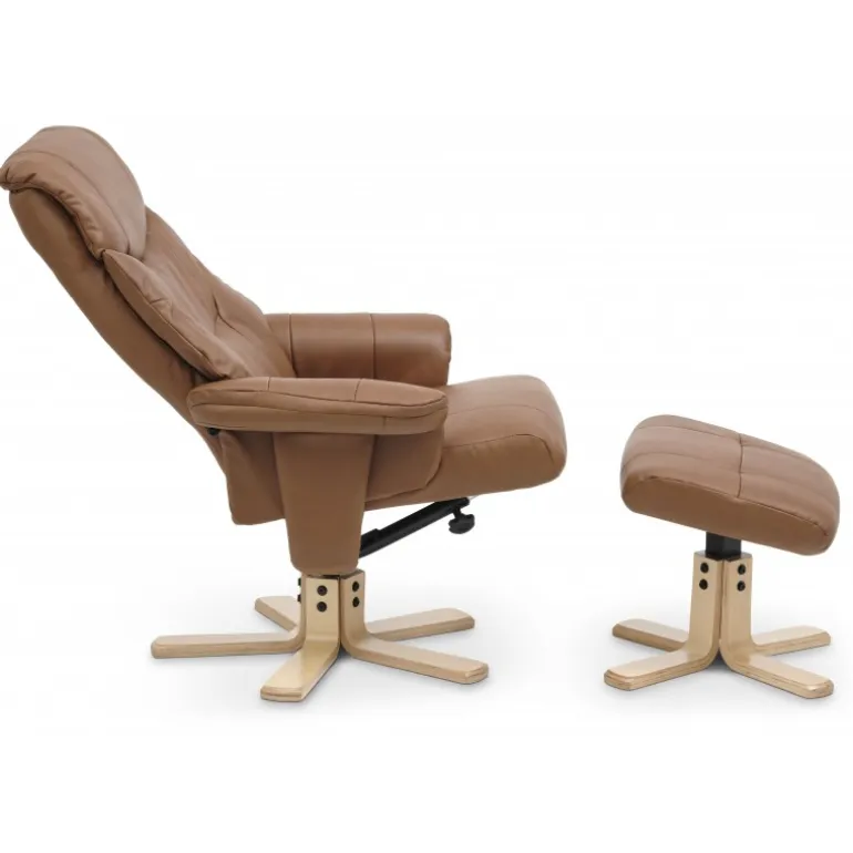 Lænestol inkl. fodskammel med justerbar ryg – designet til afslapning og velvære. Stolen er polstret med slidstærkt okselæder på alle slidflader, hvilket sikrer både komfort og lang levetid.