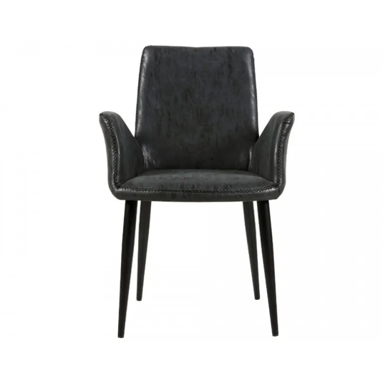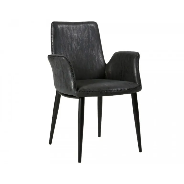 Elegant spisebordsstol i sort tekstillæder, i patina look. Spisebordsstolen tilføjer en ekstra charme til din stue og har et smukt og iøjnefaldende design, der kombinerer retrolook med et moderne formsprog.