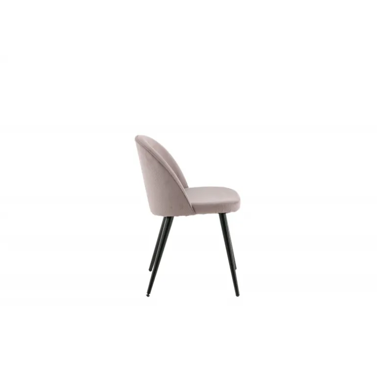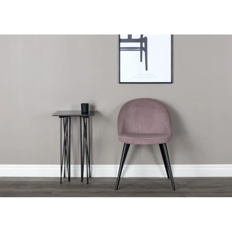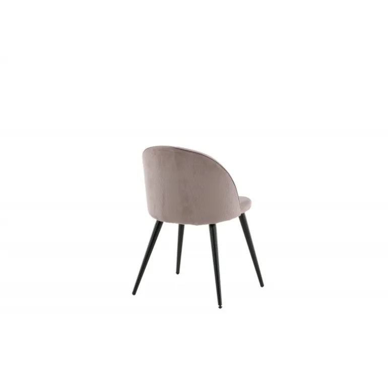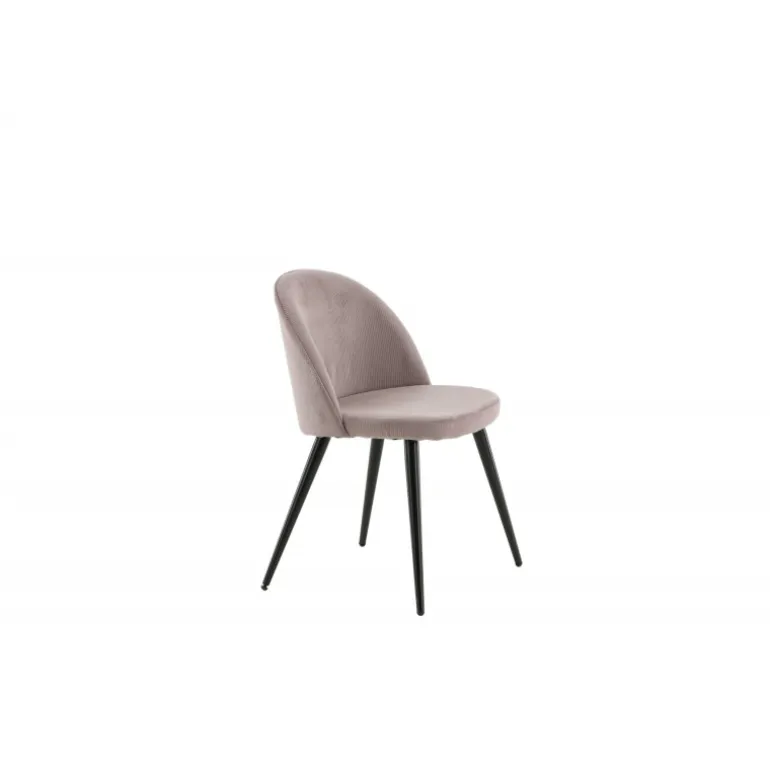 En trendy spisebordsstol i blødt, gammelt rosa manchester stof, der uden tvivl vil skabe en hyggelig atmosfære i din stue! Fløjl Spisebordsstol har et fuldt beklædt design, ben i sort pulverlakeret metal og en rundet ryg og sæde med blød polstring for ekstra komfort. Lettere samling kræves. Her sidder du behageligt og komfortabelt i timevis! Plejeråd: Brug tekstilspray til at imprægnere tekstilet, inden du begynder at bruge det, det gør også snavs og pletter lettere at fjerne i fremtiden. Fjern pletter med det samme, gnid ikke, men prøv at suge forsigtigt op med en klud.