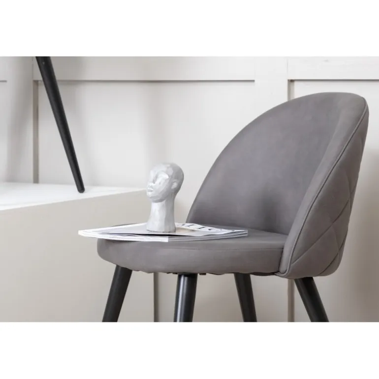 Detaljerne skaber helheden! Fløjl spisestuestol imponerer med sit luksuriøse design og indbydende komfort. Stolen kommer i en smuk grå farve, der er nem at matche. Ryggen er rundet og ligesom sædet, er den blødt polstret i mikrofiber og polyester linned med dekorative syninger og gittermønster på bagsiden. Benene er let udfladede i sort jern og giver et stabilt indtryk. Løft din indretning til næste niveau og lad tiden her være dagens højdepunkt! Plejeråd: Til daglig pleje anbefaler vi støvsugning. Hvis du vil tørre møblerne af, bør du bruge en mikrofiberklud i varmt vand. Tilføj gerne et par spray af et middel beregnet til materialet og vrid kluden ordentligt.