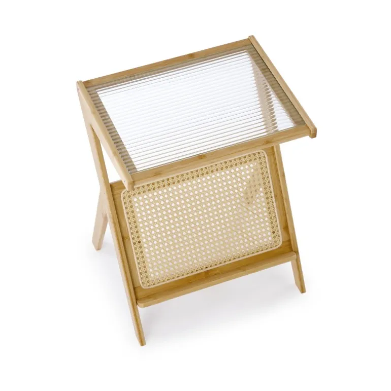 FLORA sofabord i naturlig stil er den perfekte tilføjelse til ethvert hjem. Med dimensionerne 45/46/56 cm er det ideelt til både store og små rum. Lavet af glas, naturlig rattan og solid bambustræ, kombinerer det holdbarhed med æstetisk skønhed. Den naturlige farve passer perfekt ind i moderne som traditionelle indretninger. Uanset om du vil nyde din morgenkaffe eller fremvise dine yndlingsbøger, er FLORA sofabordet det oplagte valg.