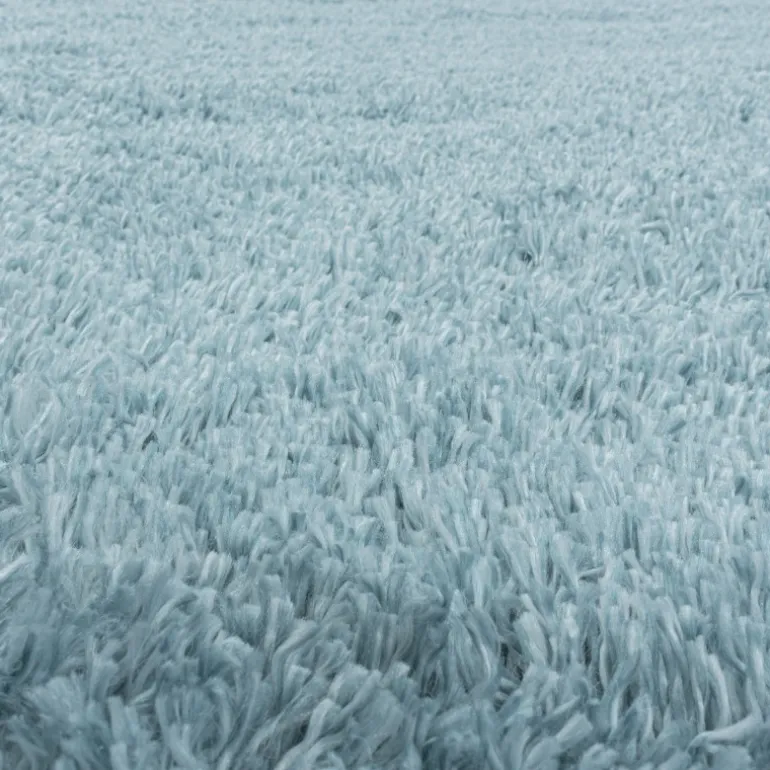 Fluffy Rund Shaggy tæppe Ensfarvet – Blå