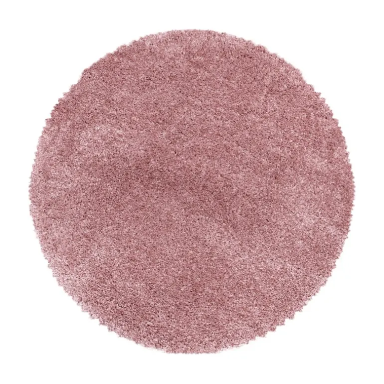 Fluffy Rund Shaggy tæppe Ensfarvet – Rosa