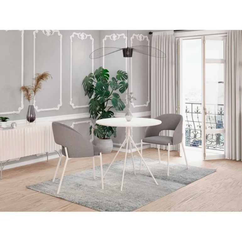 Oplev elegance og funktionalitet med det FONDI bord. Dette stilfulde bord kombinerer moderne design med holdbare materialer, perfekt til enhver indretning. Med en diameter på 80 cm og en højde på 75 cm passer det ideelt til både små og store rum. FONDI bordet er lavet af lakeret MDF og pulverlakeret stål, hvilket sikrer en lang levetid og et flot, mat hvidt finish. Med en nettovægt på 12,3 kg er det nemt at håndtere og placere, mens det stadig giver stabilitet og robusthed.