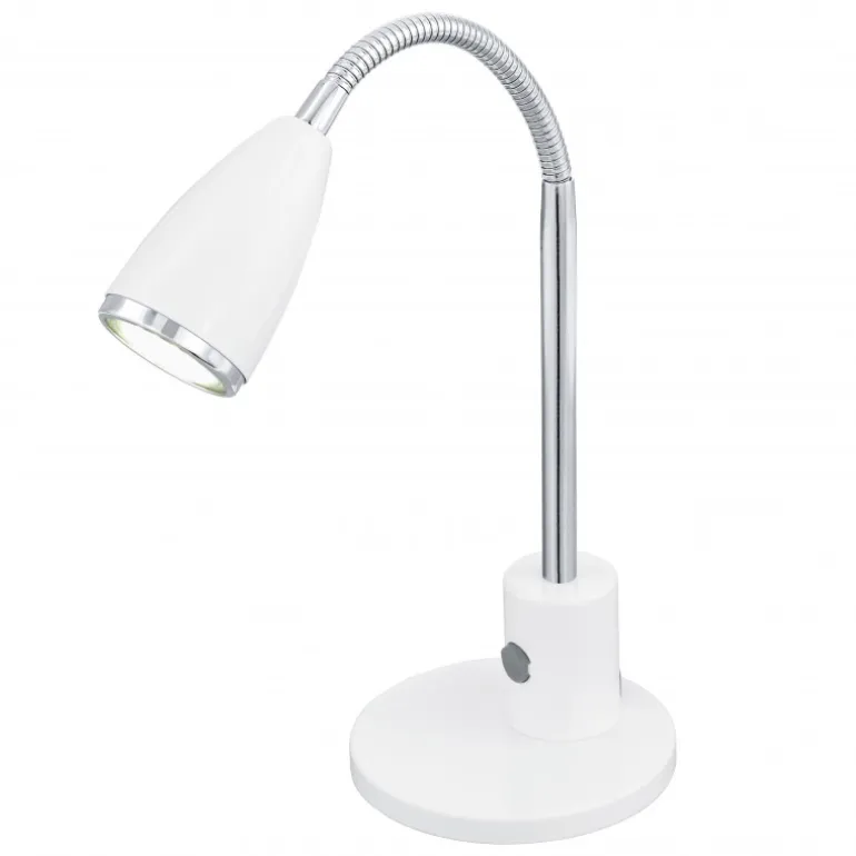LED bordlampe i hvid. Dette er en smart, lille bordlampe, der er forsynet med fleksibel hals og egner sig derfor godt som f.eks. skrivebordslampe. Lampen er udstyret med en 2,5W GU10 pære som svarer til 15W.
