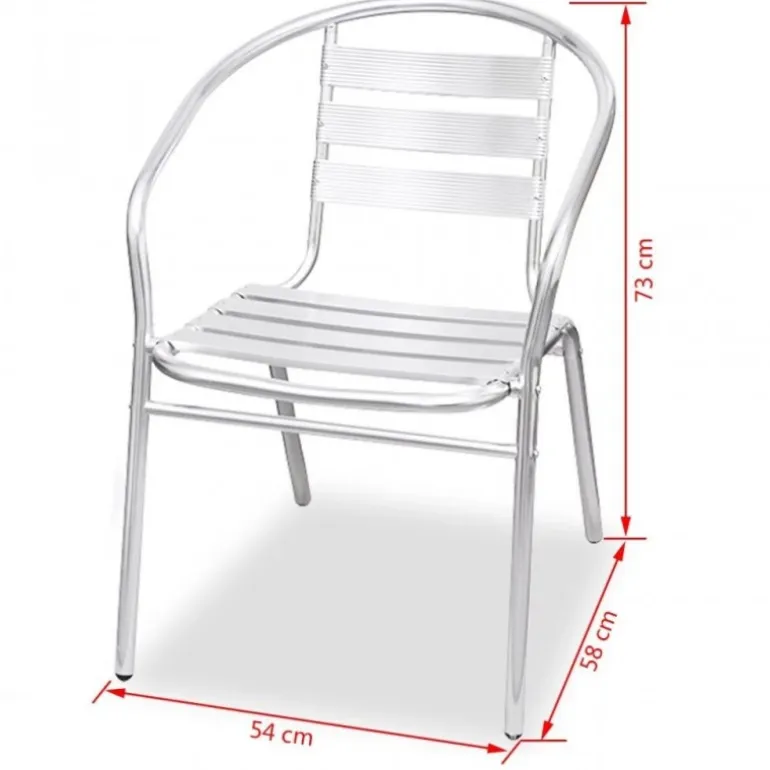 Vores stole er fremstillet af aluminium i høj kvalitet, som vil passe til ethvert interiør. Disse er robuste, holdbare og vejrbestandige, da de er lavet af aluminium, og de er derfor egnet til udendørs brug. De er designet til at give en behagelig siddeoplevelse. Disse stole kan også stables for nem transport og opbevaring, når de ikke er i brug.