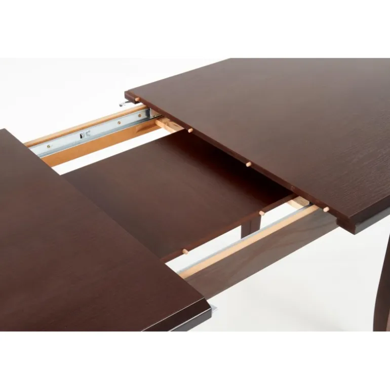 Oplev FRYDERYK Spisebord med udtræk i mørk valnød – det perfekte valg for dem, der søger både stil og funktionalitet. Med en længde, der kan justeres fra 160 cm til 240 cm, er dette bord ideelt til både små og store sammenkomster. Bordpladen er lavet af lamineret MDF, hvilket giver en slidstærk og elegant overflade. De solide ben i bøgetræ sikrer stabilitet og langvarig holdbarhed. Den mørke valnøddefarve tilføjer et sofistikeret touch til enhver spisestue eller køkken.