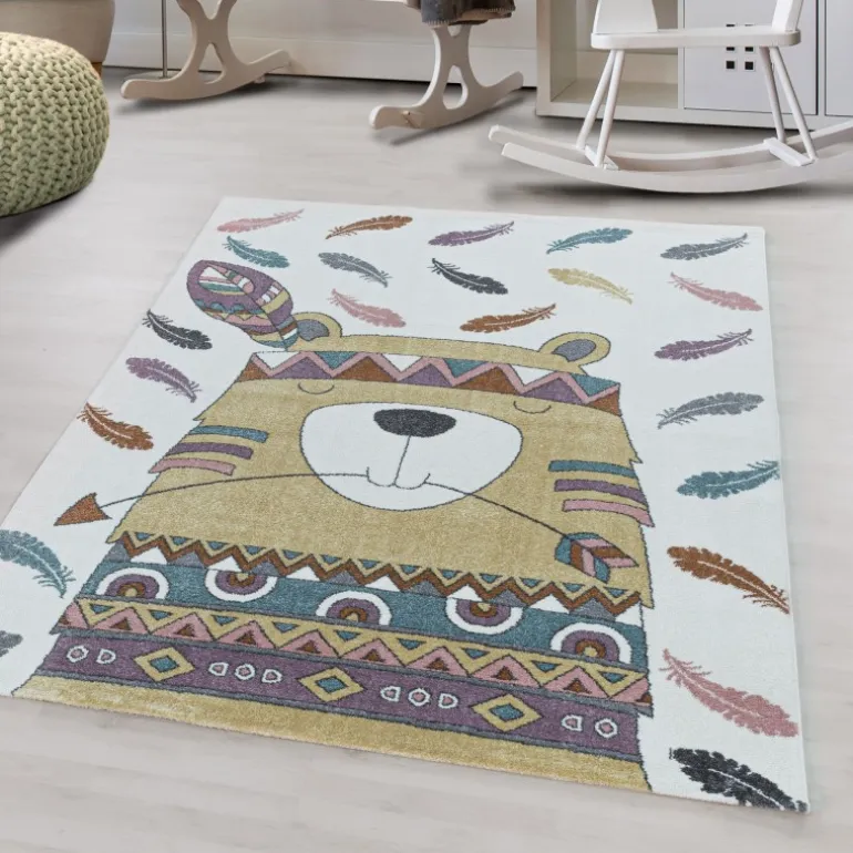 Dette Funny tæppe er fremstillet af 100% Polypropylen, som er syntetiske fibre, hvilket gør det særdeles slidstærkt.