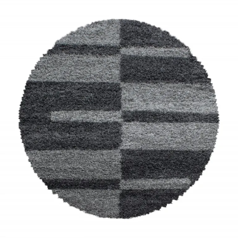 Gala Rund Shaggy tæppe Ternet – Grå