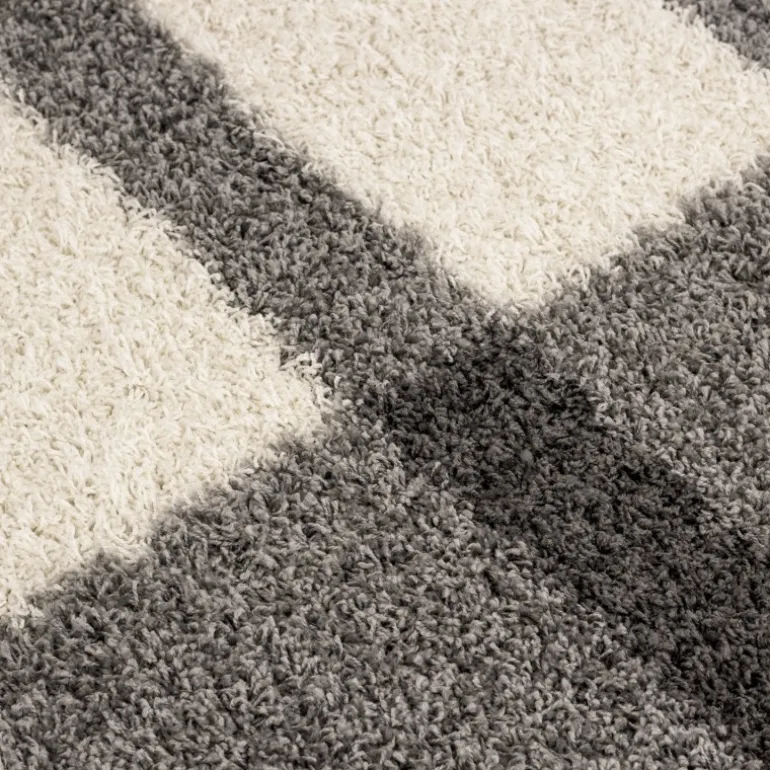 Gala Rund Shaggy tæppe Ternet – Lysegrå