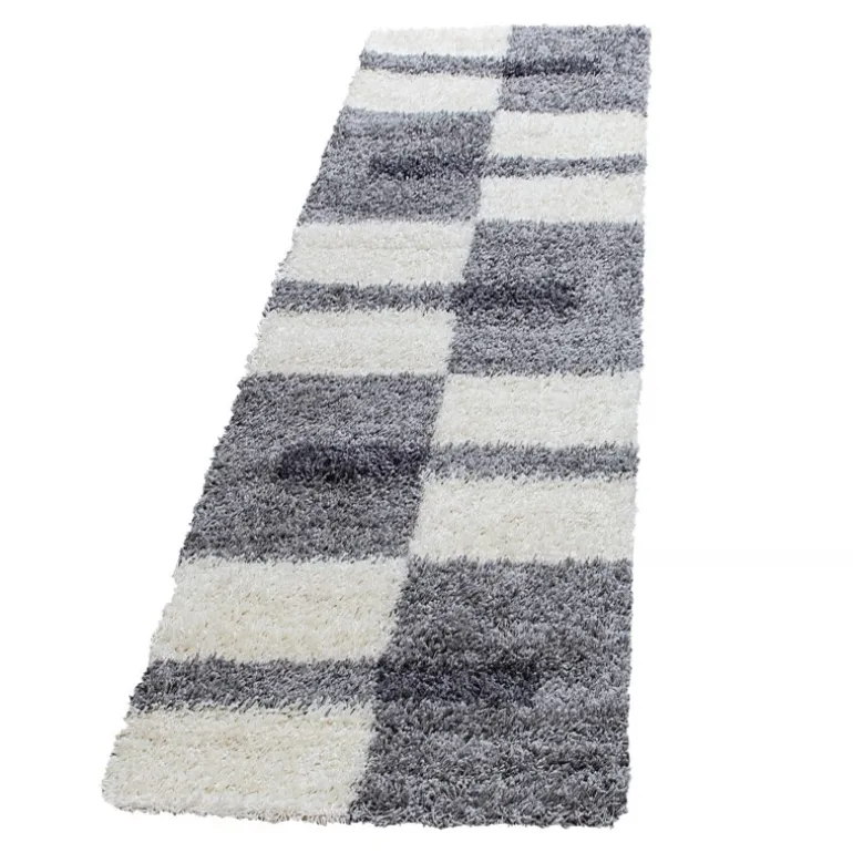 Gala Shaggy Tæppeløber Ternet – Lysegrå