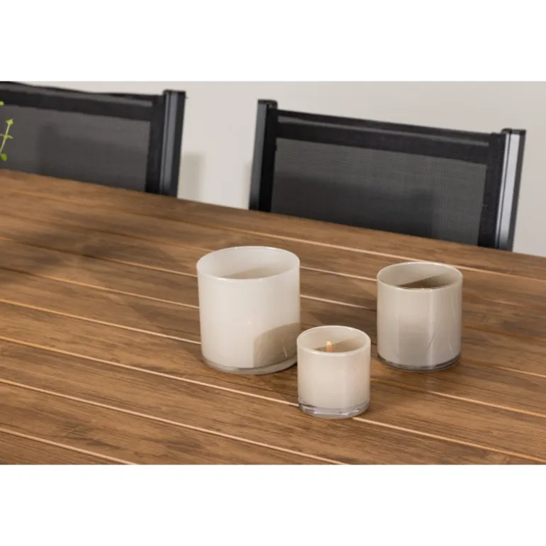 - Materiale: Bord lavet af holdbart aluminium og finer, stole lavet af aluminium og Textilene.