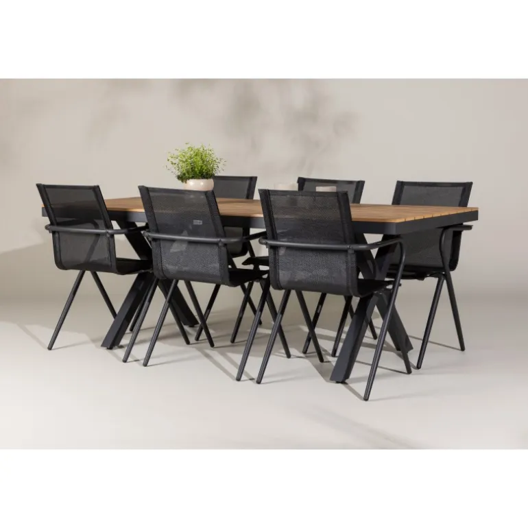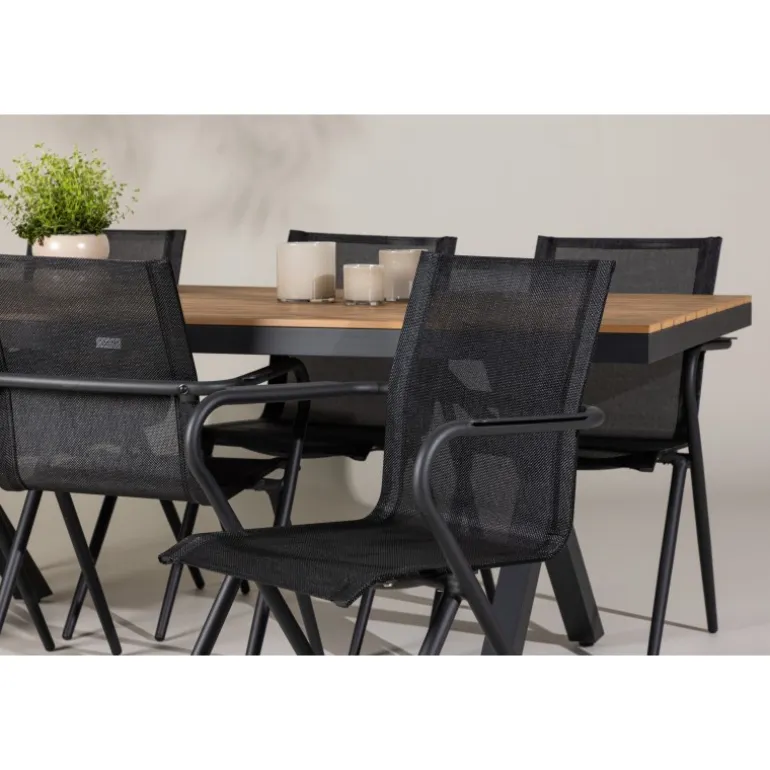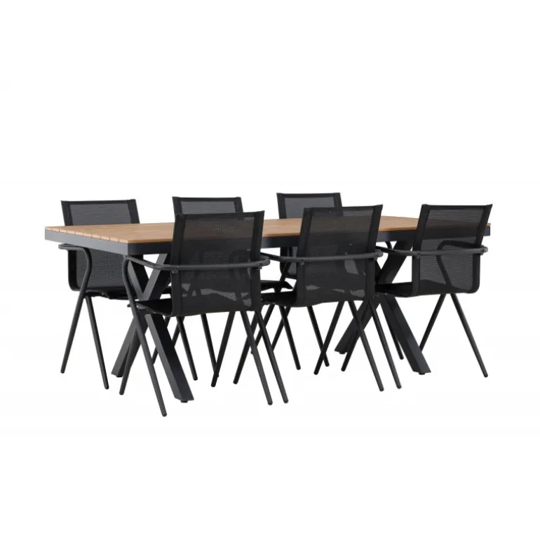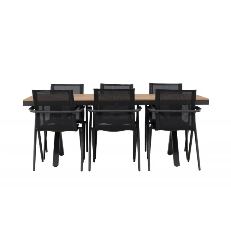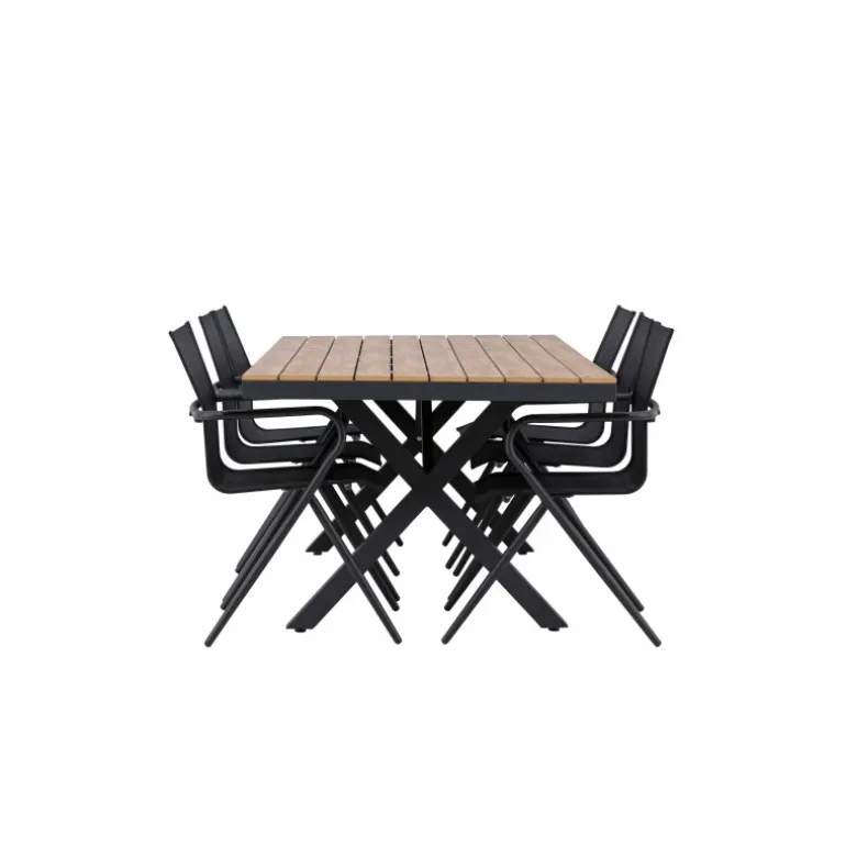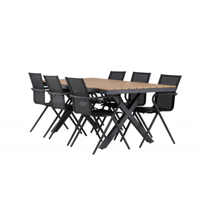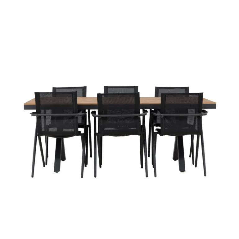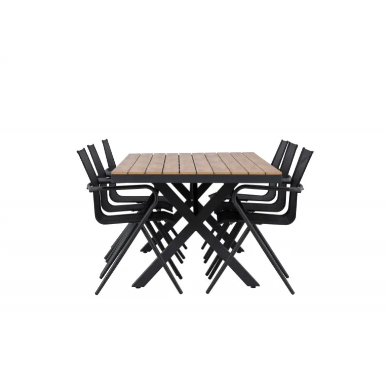 Oplev den perfekte kombination af stil og funktionalitet med vores Loungesæt – Havemøbelsæt, bestående af Garcia-bordet og Alina-stolene. Med sit gennemtænkte og trendy design er dette Loungesæt – Havemøbelsæt den ideelle tilføjelse til din spisestue eller terrasse. Garcia-bordet er en imponerende kreation med generøse dimensioner på 100×200 cm, lavet af aluminium. Den elegante brune farve giver et varmt og indbydende præg til dit rum og skaber en atmosfære af afslappet elegance. Alina-stolene er fremstillet af samme aluminiumsmateriale som bordet og kommer i en tidløs sort farve, der perfekt komplementerer bordets brune nuance. Med seks stole i sættet kan du nemt invitere familie og venner til hyggelige middage og sammenkomster. Dette Loungesæt – Havemøbelsæt er neutralt i sit design, hvilket gør det nemt at matche med forskellige interiørstile. Dets trendy og velovervejede udseende gør det til en moderne og stilfuld tilføjelse til dit hjem. Uanset om det er til hverdagsmiddage eller særlige lejligheder, er Garcia og Alina Loungesæt – Havemøbelsættet den ultimative løsning til dine behov.