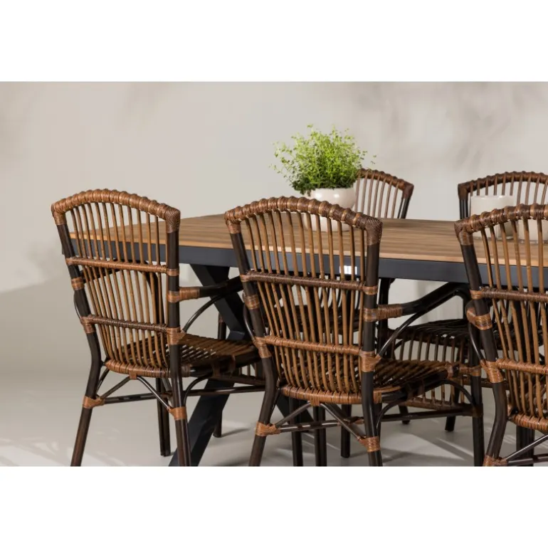 - Stilfulde stole: Galera-stole med brune rattan-sæder og aluminiumsben for stabilitet.
