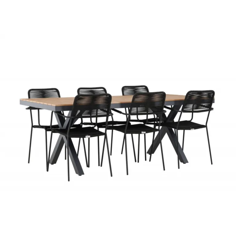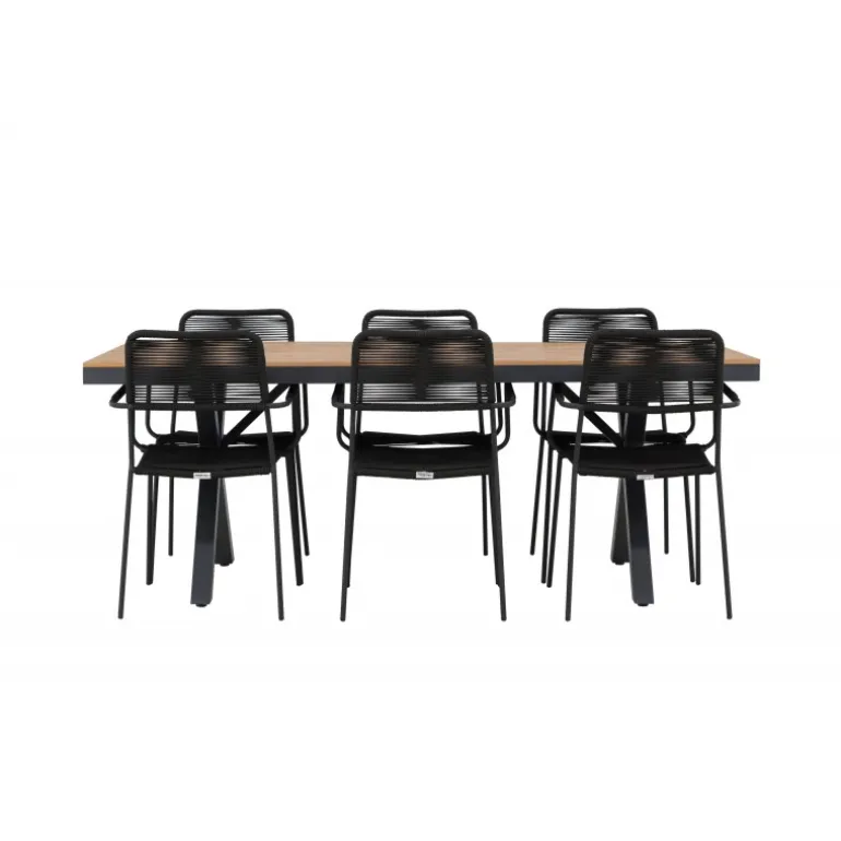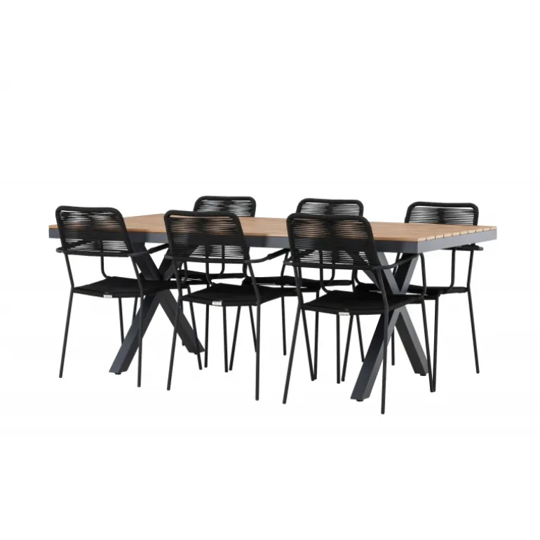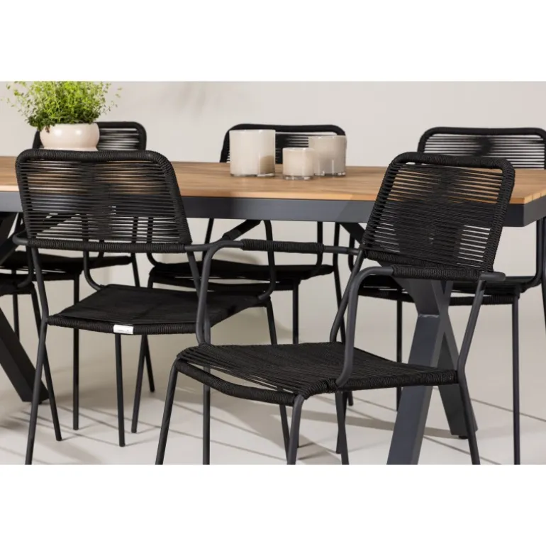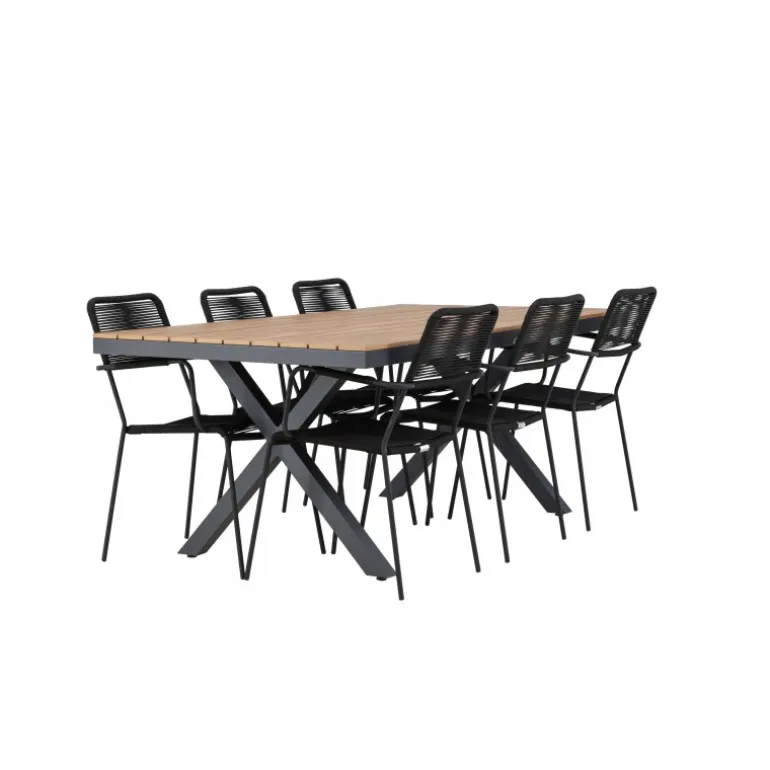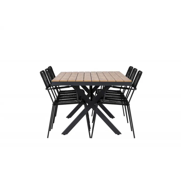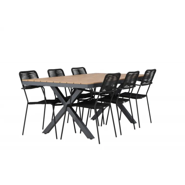 Opdag det perfekte Loungesæt – Havemøbelsæt til dit udendørsområde med vores elegante ensemble, bestående af Garcia-bordet og Lindos-stolene. Garcia-bordet er midtpunktet for din udendørs spiseoplevelse og har generøse dimensioner på 100×200 centimeter. Fremstillet af aluminium i en smuk brun nuance, udstråler dette bord en stil, der problemfrit blander sig med dit udendørs miljø. Lindos-stolene supplerer Garcia-bordet perfekt. Konstrueret med reb og stålben i en elegant sort farve, tilbyder disse stole både stil og komfort til din udendørs afslapning. Med seks stole inkluderet er dette Loungesæt – Havemøbelsæt ideelt til at samle familie og venner til mindeværdige øjeblikke under åben himmel. Skab den perfekte atmosfære for måltider og afslapning i dit udendørsområde med vores Garcia og Lindos Loungesæt – Havemøbelsæt.