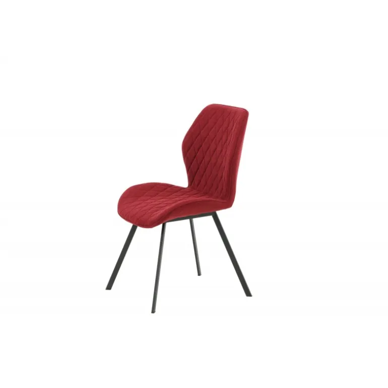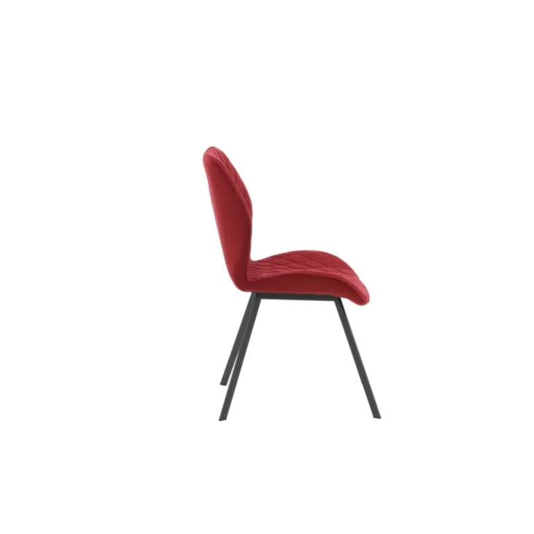 En lækkert farveklik gør hverdagen bedre! Gemma er en spisebordsstol med alt det rigtige – praktisk, stilfuld og tidløs! I et fuldt beklædt eksklusivt design med ben i sort pulverlakeret metal og en ryg og sæde i en skålformet design i mørkerød polyesterstof, får du en stol med høj komfort. Dekorative syninger på indersiden af ryggen og sædet, der danner et pænt gittermønster. Lettere samling kræves. Plejeanvisning: Brug tekstilspray for at imprægnere tekstilet, før du begynder at bruge det, det vil også gøre eventuel snavs og pletter lettere at fjerne i fremtiden. Fjern pletter med det samme, gnid ikke, men forsøg at suge forsigtigt op med en klud.