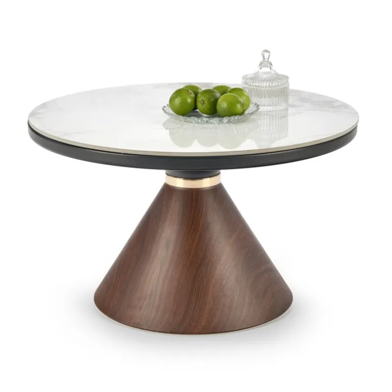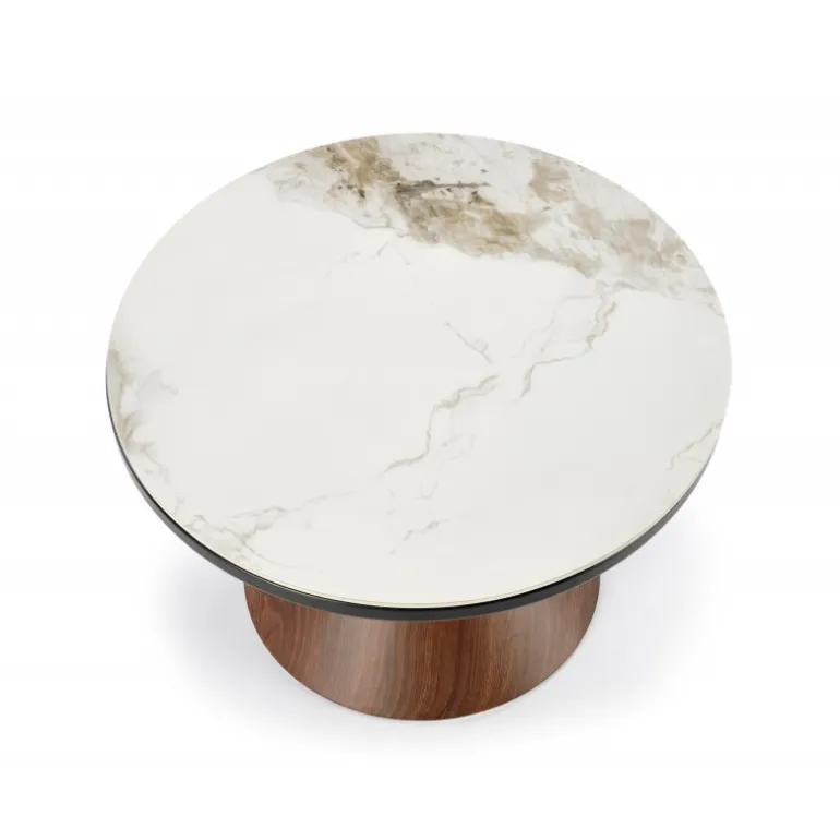 Oplev elegance og funktionalitet med GENESIS sofabord i hvid marmor, valnød og guld. Dette sofabord kombinerer tidløst design med moderne materialer, hvilket gør det til et perfekt supplement til enhver stue. Med en diameter på 70 cm og en højde på 43 cm er det ideelt til både små og store rum. GENESIS sofabord er fremstillet af holdbart keramisk materiale og malet stål, som sikrer langvarig kvalitet og stil. Den smukke kombination af hvid marmor, valnød og guld tilføjer et luksuriøst touch til din boligindretning.