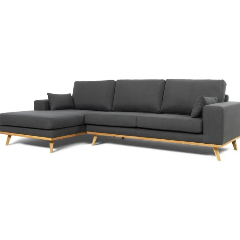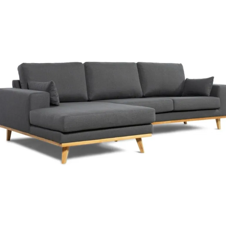 Genova sofa med venstrevendt chaiselong i lækkert stilrent design. En sofa hvor der ikke er sparet på materialerne. Løse sædehynder af 30 kg. koldskum, som sikrer en god og fast siddekomfort mange år frem. Under sofaen er et understel af olieret egetræ monteret, med smukke åretegninger og en gylden glød. SIMONE sofaen er til dig, som går op i kvalitet og som nyder naturens smukke ynde.