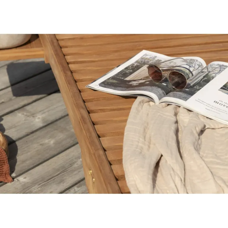 Sid ned i vores smukke solseng i Ghana-serien og nyd solen! Solsengen er lavet af teak og har en dyb træfarvet nuance. Solsengen inviterer til afslapning og bekvemmelighed, og med dens tilhørende bakke passer den perfekt ind på terrassen eller altanen, når du vil kunne lægge bogen fra dig og nyde øjeblikket! Hynde medfølger ikke.