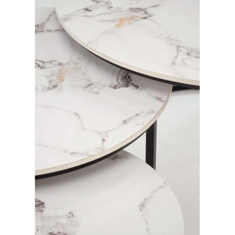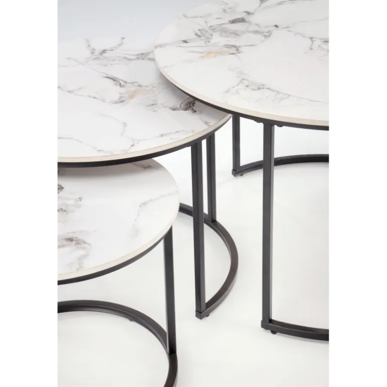 GILDA sæt med tre sofaborde kombinerer stil og funktionalitet i et elegant design. Med hvid marmor overflader og Sort pulverlakeret stål rammer, tilføjer dette sæt en sofistikeret touch til ethvert rum. Sæt med tre gør det nemt at tilpasse enhver indretning og opfylde forskellige behov. Dimensionerne er 80/50 cm, 60/45 cm og 45/40 cm.