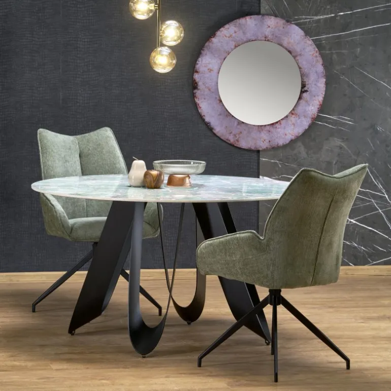 Opgrader dit hjem med det elegante GIOVANI Rundt Bord i grøn marmor og Sort stel. Dette sofistikerede bord kombinerer moderne design med holdbare materialer som sinteret sten og pulverlakeret stål. Med dimensionerne 135/76/60 cm passer dette bord perfekt til enhver spisestue eller stue, og det bliver hurtigt midtpunktet i dit rum. GIOVANI Rundt Bord er ikke kun et stilfuldt møbel, men også praktisk og robust, ideelt til både daglig brug og særlige lejligheder.
