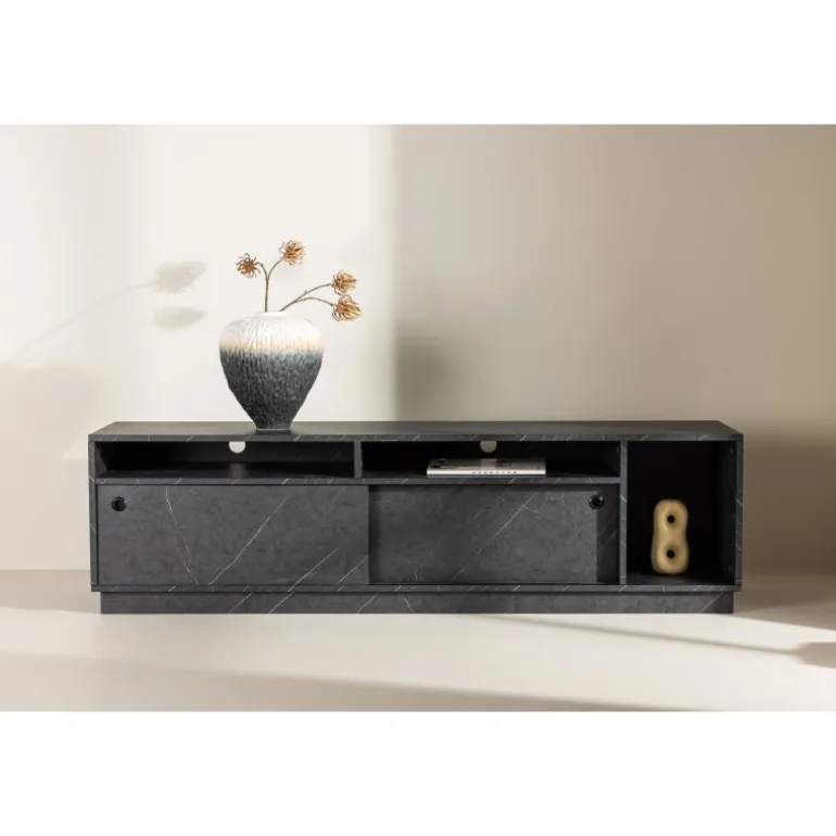 - Tidløst design: Girona TV-bænk i sort melamin passer perfekt til enhver indretning.