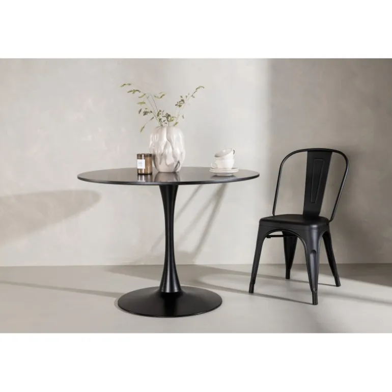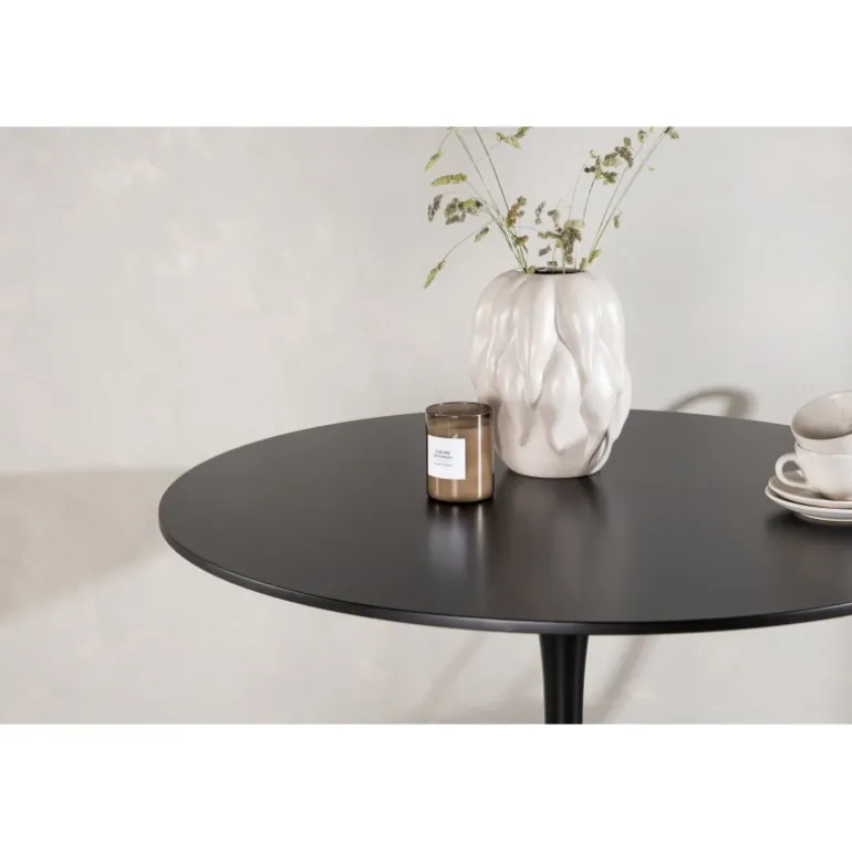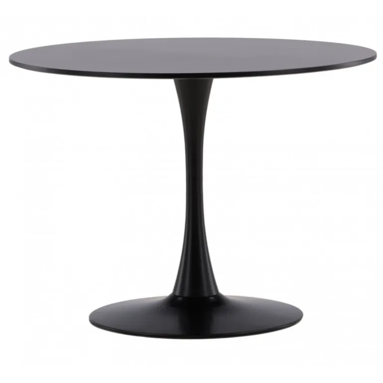 Et spisebord, der holder gennem tiden! Glade spisebord har et stilfuldt skandinavisk design med en lækker trompetfod i sort stål og en sort bordplade i MDF. Det holdbare materiale giver dig et robust spisebord, der er nemt at vedligeholde med vores vedligeholdelsesråd. Match med et par lækre spisebordsstole, og du får en komplet Spisebordssæt til at samle dine kære omkring!