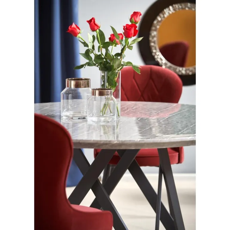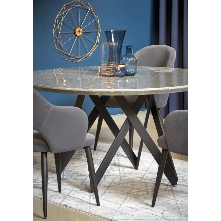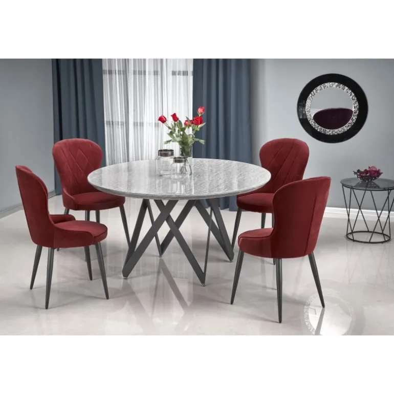 Oplev det elegante GUSTIMO bord med sin moderne og stilfulde design. Dette bord er fremstillet af lamineret MDF og pulverlakeret stål, hvilket giver både holdbarhed og et sofistikeret udseende. Den grå marmorerede bordplade kombineret med Sorte ben skaber en luksuriøs stemning i ethvert rum. Med dimensionerne Ø140/77 cm passer dette bord perfekt til både spisestuer og opholdsstuer. Køb GUSTIMO bordet og tilføj et strejf af elegance til dit hjem.