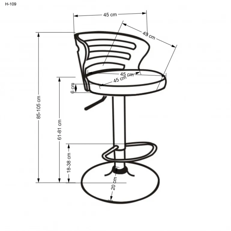 | Dimensioner | Højde: 85-105 cm, Bredde: 49 cm, Dybde: 45 cm, Siddehøjde: 61-81 cm |