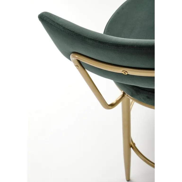 - Stilfuldt design: Kombinerer mørkegrøn velour med guldfarvet pulverlakeret stål.