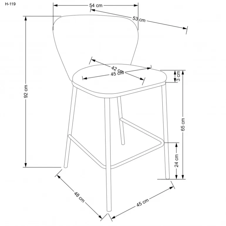 Gør din bar eller restaurant endnu mere indbydende med H119 Barstolen i cremefarvet. Køb nu og oplev en perfekt balance mellem stil og komfort.