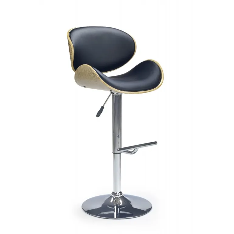 Opgrader din bar eller restaurant med vores stilfulde H44 Barstol i farven lys eg og Sort. Denne moderne Barstol kombinerer elegant design med høj funktionalitet. Den er fremstillet af kromstål, bøjet krydsfiner og økologisk læder, der sikrer både holdbarhed og komfort. Med justerbar højde fra 93 cm til 115 cm passer denne Barstol perfekt til enhver bar eller bord.