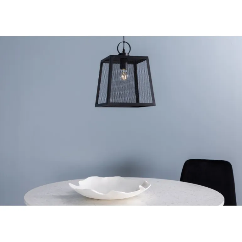 Hage er en loftlampe, der imponerer med sit unikke design! Lampen har en sort ramme i stål og et netmønster på to af siderne. Med denne lampe får du en stilfuld indretningsdetalje, der garanteret vil fange blikket. Lampen passer godt i de fleste rum og indretningsstile, men gør sig ekstra flot over spisebordet.