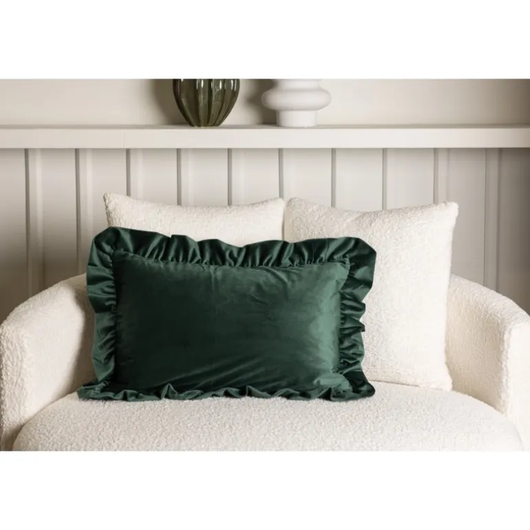 Hailey pudebetræk i skovgrøn farve skaber hurtigt en elegant og personlig blikfang i dit hjem! Hailey pudeserien tilbyder kvalitets pudebetræk i forskellige størrelser og farver – alt for bedst at opfylde dine ønsker og interiørstil. Pudebetrækket er indrammet af en dekorativ flæsekant og har en skjult lynlås på bagsiden. Det slanke velourstof giver en lækker glans til puden og fremhæver den smagfulde grønne farve på bedste vis!